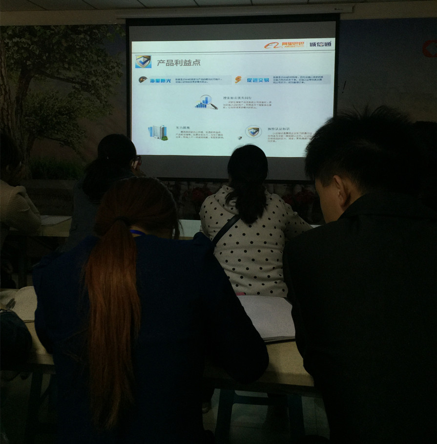 超前涂料有限公司是一個生產銷售型的企業,主要生產和銷售真石漆,內外墻乳膠漆,質感漆,水包水多彩漆,拉毛漆等外墻涂料。在線下,我們已經有十幾年的經驗,但是線上的經驗卻只有1個月,所以,一聽說阿里巴巴這周有培訓課程,電商的4位超前超人們趕緊報名前來參加: